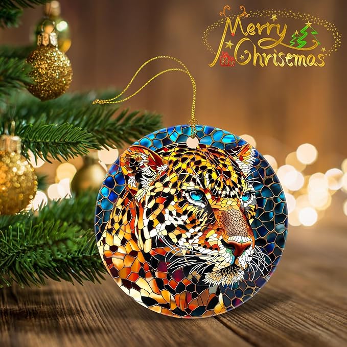 Christmas Tree Decorations Leopard Ornament, Colored Ceramic Christmas Tree Ornaments, Xmas Decorative Hanging Ornaments, Christmas Decor Indoor Home Holiday Party Gifts Leopard