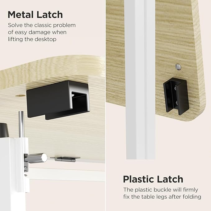 • 【Folding Table】Thanks to the convenient design of the metal spring lock, the table can be easily folded with one pull and one buckle, bidding farewell to the classic problem of easy damage when lifting the desktop; In addition, the table legs make a universal design, which can be installed on either side without distinguishing left or right leg.