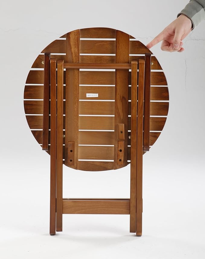 Outdoor Small Table Round Folding Side Table, Foldable Wooden End Table for Indoor, Porch, Patio, Camping as Coffee Table or Plant Stand, Brown