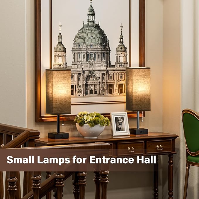 • 4. Plug and Play Chic Bedroom Lamps Set - Package included 2pcs non-flicker FREE E26 led light bulb (worth $15), 2pcs install-free square black flaxen fabric shade, 2pcs stable lamp body and classic black metal base. Put all together for a minimalism classic lamp is really perfect to decorate anywhere of your house. An ideal tableside lamp for bedroom, guest room, living room, study room, kids room, college dorm room for girls and boys, office room, desk, etc.