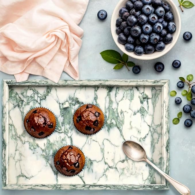 • 【INGENIOUS WORKMANSHIP】- Our luxury serving trays cut neatly and without burrs. The polished surface of the marble tray is particularly smooth and delicate to touch. Easy to clean. Heat resistant. Never fade. Sturdy and Durable. Ideal gift for housewarming, festival, parties.