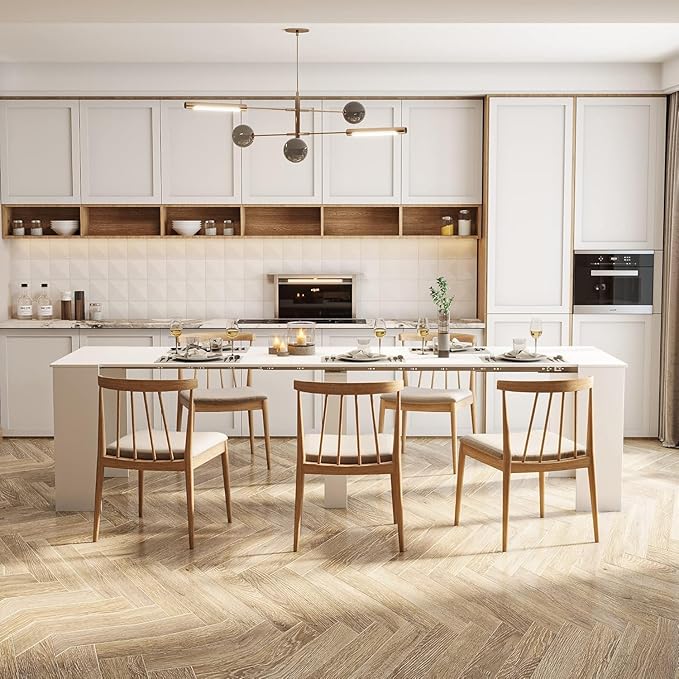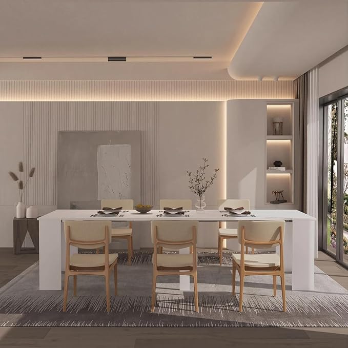 DMAITH 20"-118" White Extendable Dining Table for 2-12 People, Modern Modular Extension Table, Space-Saving Extra Long Folding Dining Table, Multifunctional Conference Meeting Table