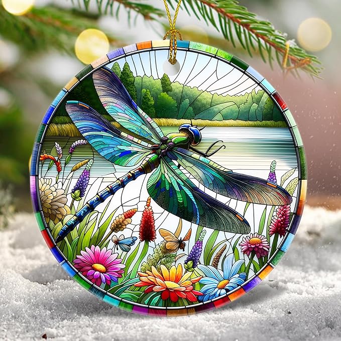 Christmas Tree Decorations Dragonfly Ornament, Smooth Ceramic Christmas Tree Ornaments, Xmas Decorative Hanging Ornaments, Christmas Decor Indoor Home Party Gifts Souvenir Dragonfly