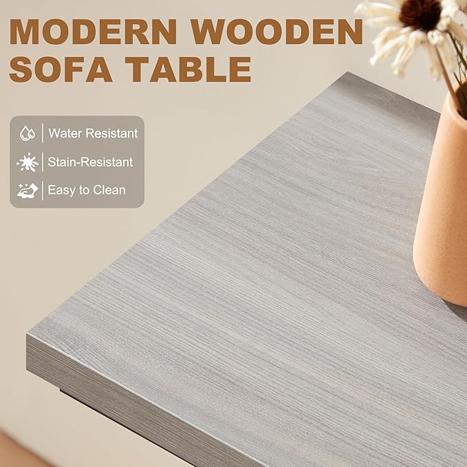 • Sturdy & Durable: The behind couch table is made of newly upgraded particle board and sturdy metal frame with solder joints, which is stable and stain-resistant. With a weight capacity of up to 110 lbs, console tables for entryway can accommodate all your essentials. A full 1.57" thick tabletop also enhances stability. Four extra adjustable feets ensure that your hallway table stands firm on uneven floors.