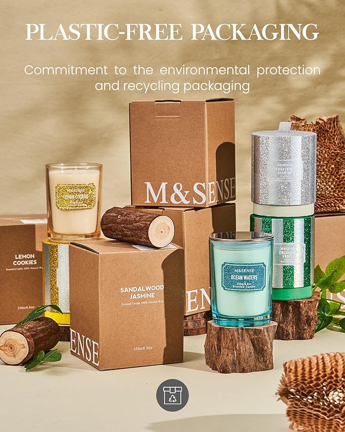 • Clean Even Burning - M&SENSE candles employ American cotton flat braid wicks with paper throughout. It burns more consistently than 100% cotton wicks. One candle requires three times of manual pouring of natural soy wax, which makes the wax more even and burns well.