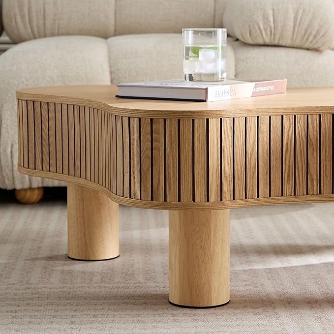 • ☕【Modern Design】: The irregular shaped table is described as having a "modern" design,and around the MDF relief,surface with walnut ash grain.This can complement a wide range of interior design styles. This modern design adds a touch of sophistication and elegance and can be matched with any modern style living room and office.