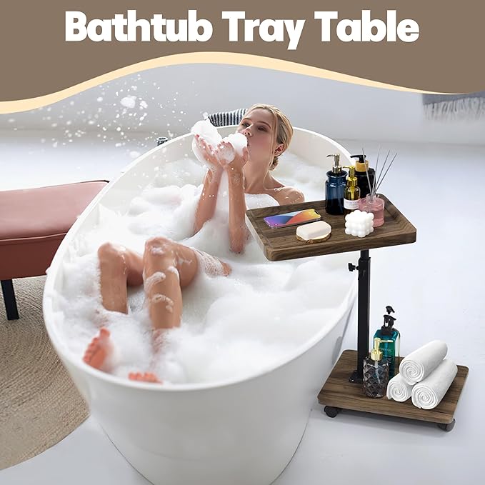 • Multipurpose Tray Tables: This modern adjustable height narrow side table can easily be paired with other furniture, and the legs of the small side table can flexibly slide into the bottom of the sofa, bed or chair. It can be used as a convenient food or drink table, tv table, night stand, snack table, bedside table, wine table, bathtub tray, bed tray, dinner tray table or for other purposes, and also serve as a perfect interior decoration.