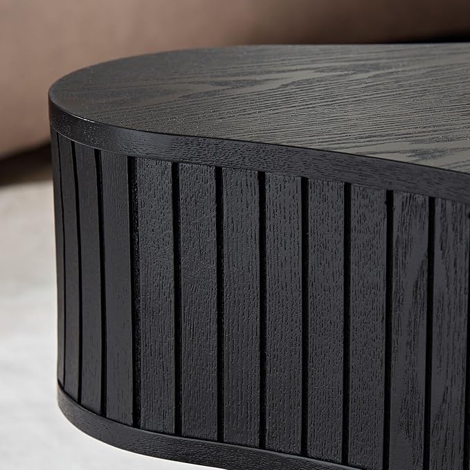 Coffee Table for Living Room, 42.52'' Modern Wooden Handcraft Drum Coffee Table Irregular Shaped Coffee Table,Small Coffee Table Side Table End Table with Sturdy Pedestal, Black