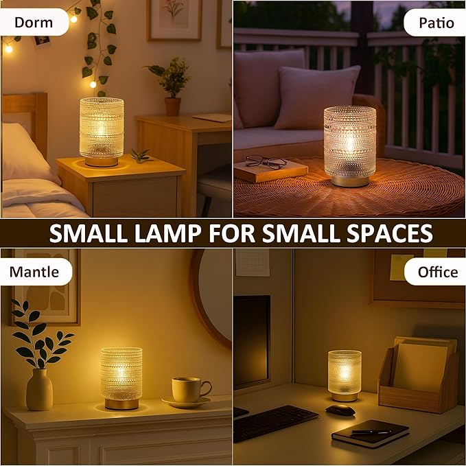 • ✅ 【𝗦𝗠𝗔𝗟𝗟 𝗘𝗠𝗕𝗢𝗦𝗦𝗘𝗗 𝗚𝗟𝗔𝗦𝗦 𝗧𝗘𝗫𝗧𝗨𝗥𝗘𝗗 𝗔𝗘𝗦𝗧𝗛𝗘𝗧𝗜𝗖 𝗟𝗔𝗠𝗣】 Say goodbye to harsh, glaring LED bulbs. This small but stylish lamp stands just 5.9"" *3.9"" inch, making it a charming accent for shelves, nightstands, windowsills, or desks without taking up much space. The small accent warm light creates a soft warm ambient glow light, forming a relaxing nook while avoiding the cheap texture made of plastic. Whether you're setting the mood for a child’s bedtime, creating cozy evening vibes,lighting your space for meditation, or just winding down after a long day—this cute battery desk lamp turns any corner into a soft, welcoming retreat.