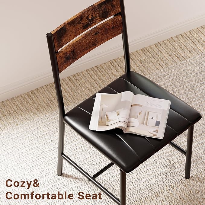 IRONCK Dining Table Set for 2, Small Kitchen Table with Upholstered Chairs Dinning Table Set for Kitchen & Dining Room, Compact Dining Set for Small Spaces, Rustic Brown