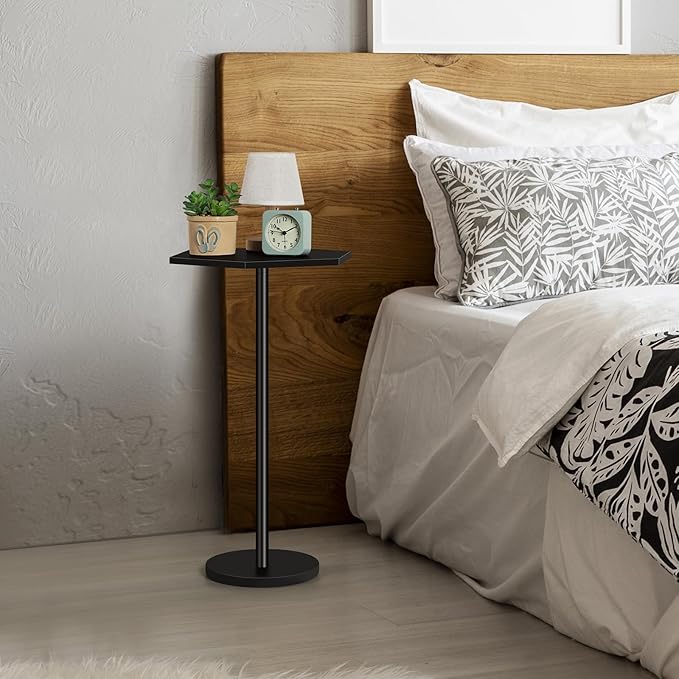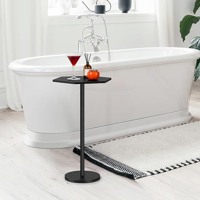 Vrisa Drink Table Small Hexagon Side Table for Small Spaces Round Pedestal Accent End Table Modern Martini Coffee Cocktail Table for Living Room, Bedroom, Sofa Couch Chair, Patio, Black