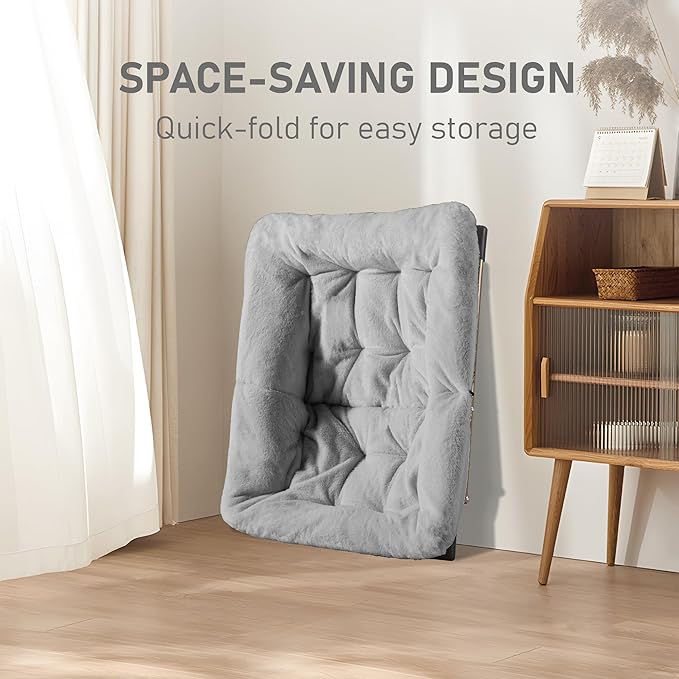 Comfy Oversized Saucer Chair, Soft Faux Fur Reading Lounge Chair for Adults, Stable X-Large Metal Frame and Non-Slip Pad, Foldable Cozy Chairs for Bedroom, Living Room, Dorm, Light Gray