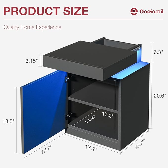• Nightstand with LED Lights: Our end table has 16 colors light strips, which can be controlled by remote control and meet different needs in various scenes. You can enjoy kinds of atmosphere as the colors, brightness and dynamic mode speeds are adjustable
