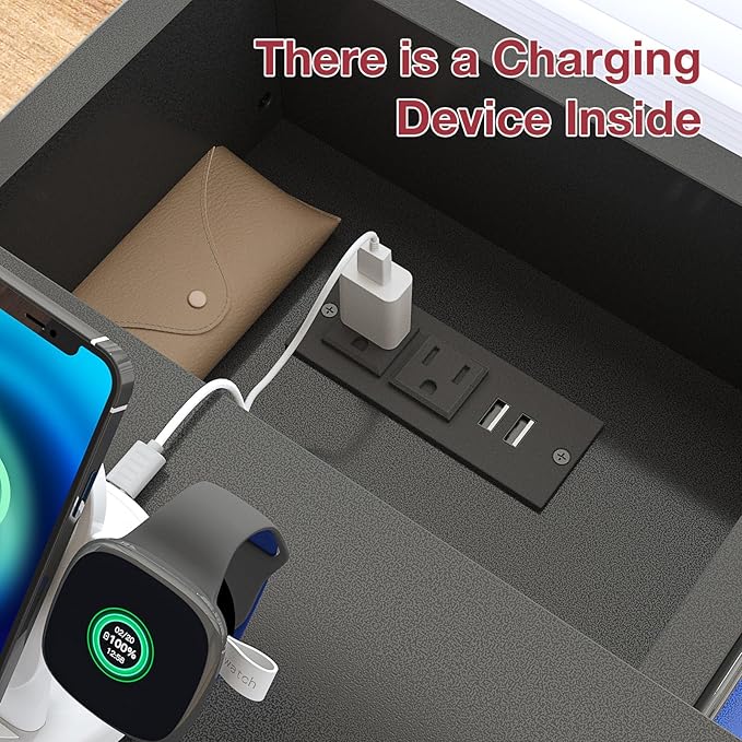 • Charging Station Design: There is charging station including 2 USB ports and 2 power sockets designed inside the top drawer, offering much convenience for mobile devices charging. The side table is also equipped with a cable hole to keep wires clean