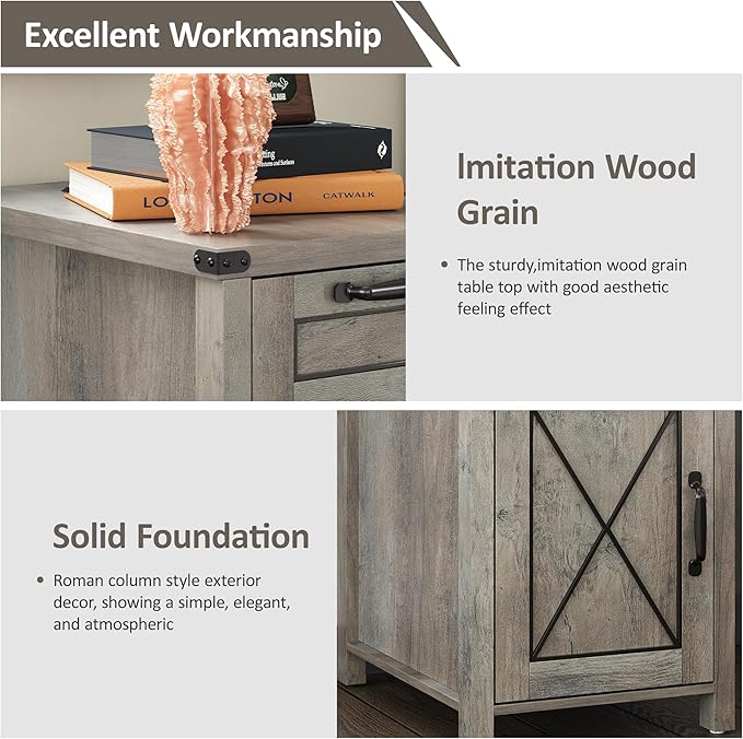 • 【Wooden Farmhouse Nightstand】Combining farmhouse and modern for all styles of home decor, it's the perfect way for adding personality and charm to your bedroom, living room and other small spaces.Whether you are a fan of a modern style or a lover of a vintage feel, this night stand will be a perfect match to your room decor and show your personal style and will catch your eyes for the fashion barn door design, classic farmhouse style, sturdy structure.
