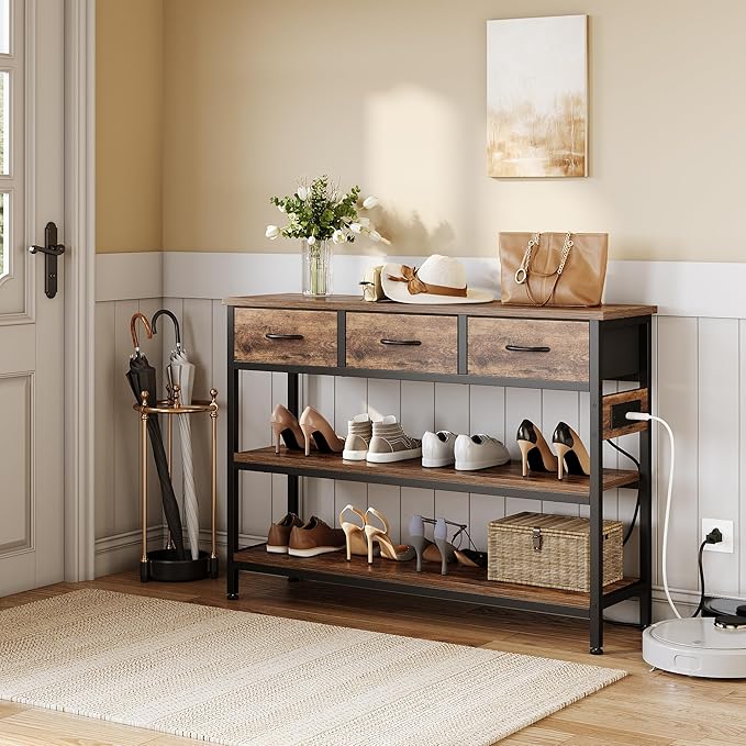 • Console Table with Storage: The entryway table comes with 3 fabric drawers to "keep clutter away". Great for storing goodies like keys, hats, gloves, cookbooks, remote controls and extra cables etc