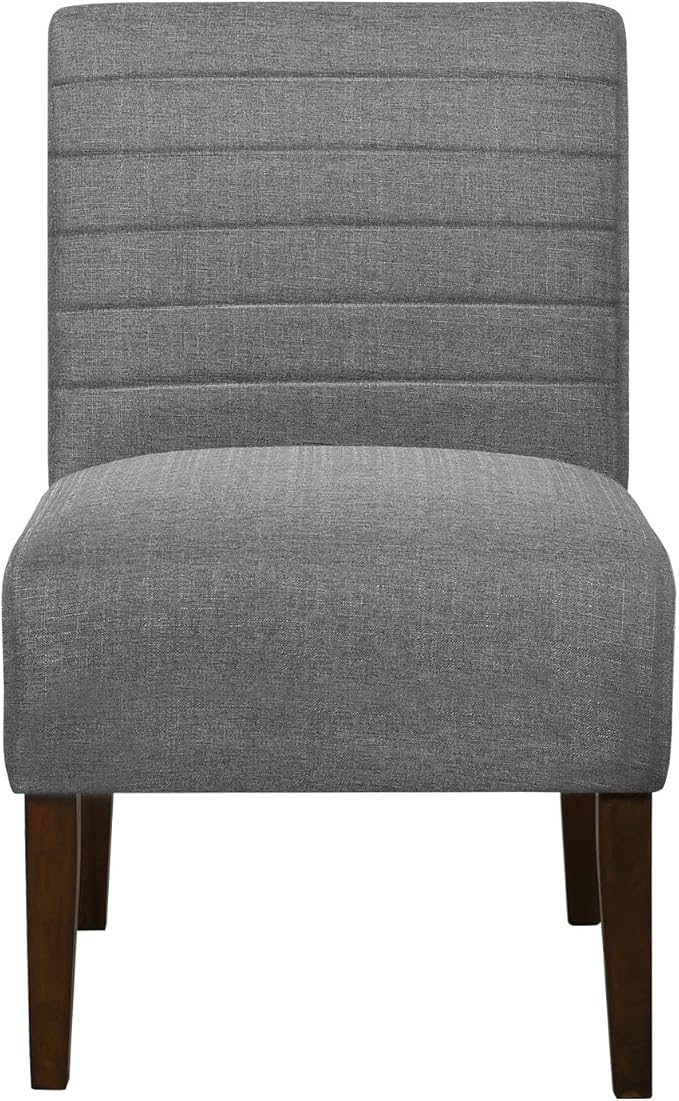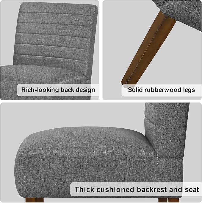 Slipper Accent Chair Modern Armless Lounge Chair with Wood Legs Upholstered Makeup Vanity Tufted Side Chair Fabric Comfy with Decor Back for Living Room Bedroom Patio (Horizontal Back, Grey)