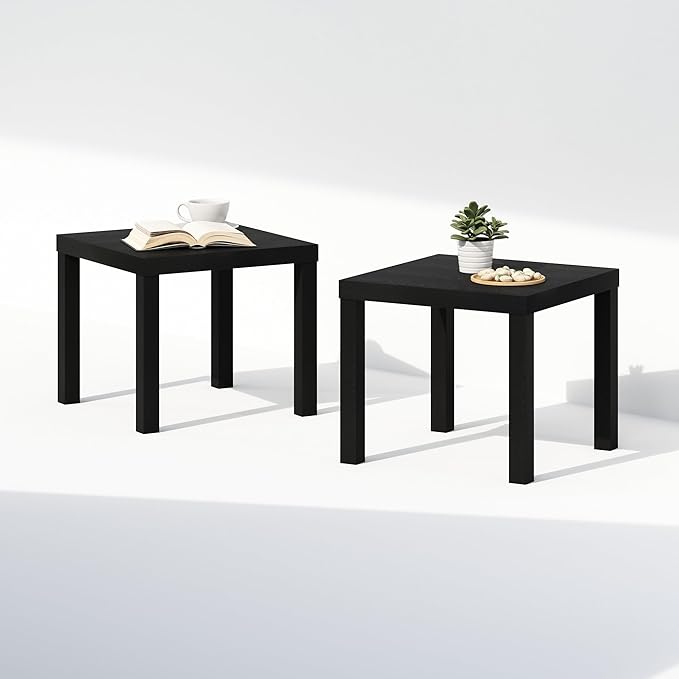 Furinno Classic Coffee Table Set of 2, Square Modern Coffee Table with 1.8" Thick Tabletop, Side Table with 4 Legs, for Living Room, Bedroom, Home Office, Black