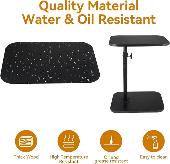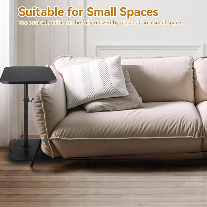 C Shaped End Table for Couch Sofa, 360° Swivel Height Adjustable TV Tray for Small Spaces,Livingroom Bedroom College Dorm Hospital (Black)