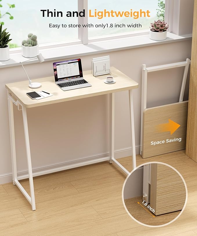 Folding Desk Small Foldable Desk for Small Space, 31.5 Inches Writing Computer Desks in Study, Home Office Foldable Office Desks for Bedroom, Oak