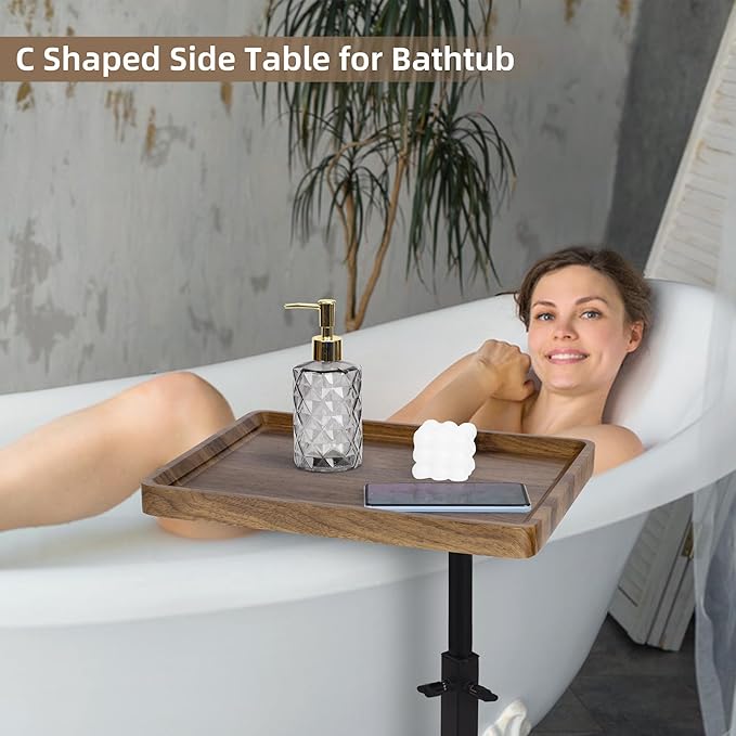 • Multi-functional C Table: This adjustable height sofa table can be used as a convenient food or drink table, couch table, tv table, night stand, snack table, bedside table, wine table, accent table, bathtub tray, or for other purposes, and also serve as a perfect room decoration. This small end tables is easy to adapt to the gaps between sofas or the narrow space next to the bed.