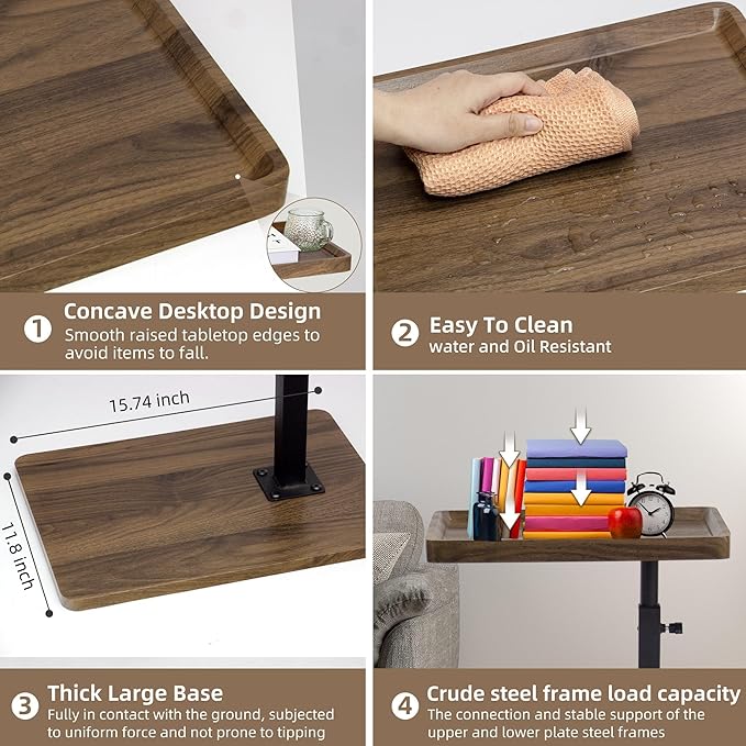 • Height Adjustable & Swivel side table: This height of tv tray can be adjusted to usage needs from 18” to 31”, and the legs of the couch side table can flexibly slide into the bottom of the sofa, bed or chair. Meanwhile, the tray table top has a 360°swivel function, so you can freely customize the angle of the table top to use it more comfortably and perfectly.