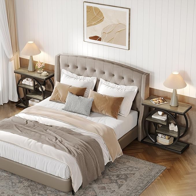 • 【Spacious 4-Tier Shelving】: This set of 2 nightstands is designed with 4 expansive shelves, which provide abundant storage for all your essentials like books, lamps, plants, remotes and other small items. With this versatile piece, maintain an organized and clutter-free decor in your living room or bedroom.