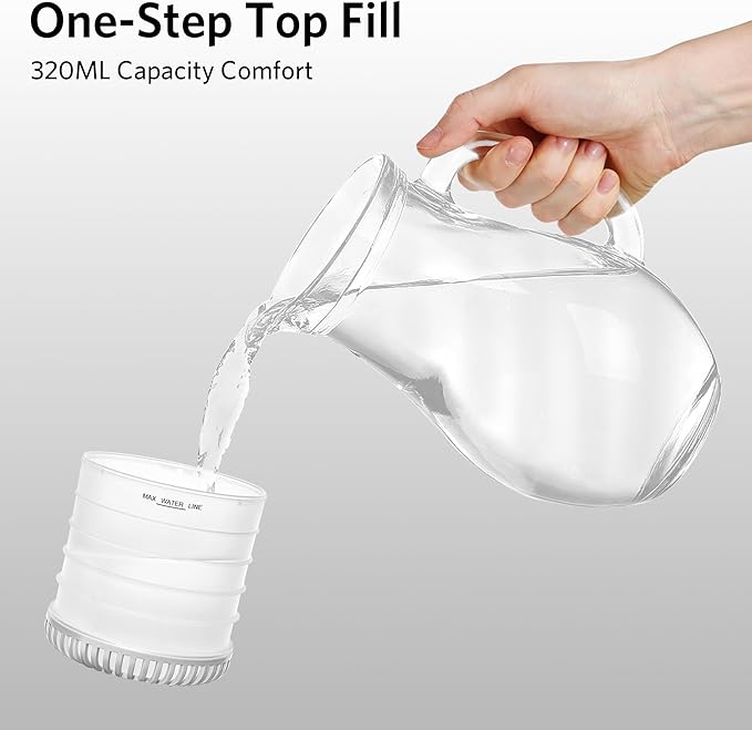 • Large 320ml Capacity for Extended Use: Enjoy up to 8 hours of mist without frequent refills. The spacious 320ml water tank is ideal for use in bedrooms, offices, nurseries, or yoga rooms.