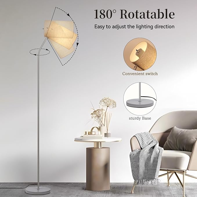 Standing Lamp for Living Room with Remote Control Light Bulb Adjustable Modern Reading Light,Floor Lamps for Bedroom,Office,Farmhouse, LED Bulb Included (Beige/Silver)