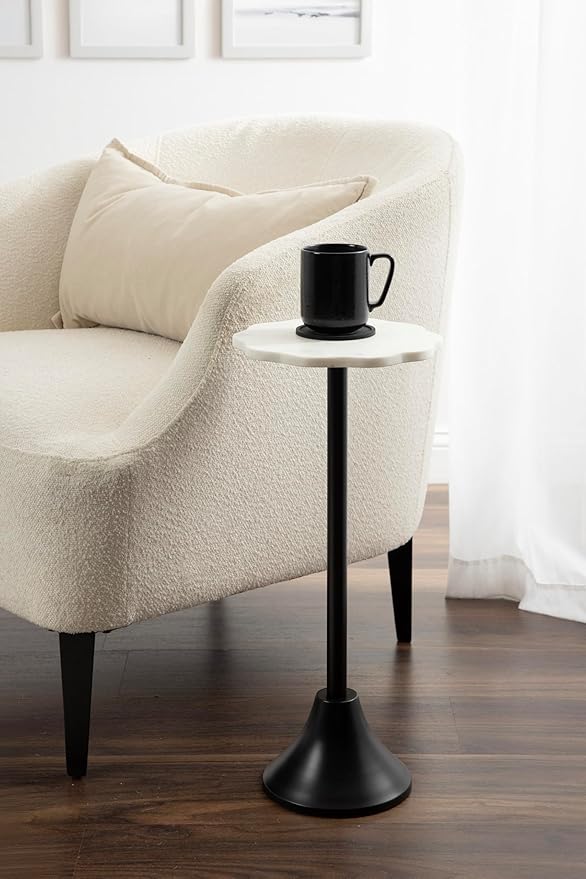 Kate and Laurel Sanzo Modern Pedestal Drink Table, 10 x 10 x 23, White Marble and Black, Decorative End Table with Scalloped Marble Tabletop for Use as Small Plant Stand or Cute Martini Table