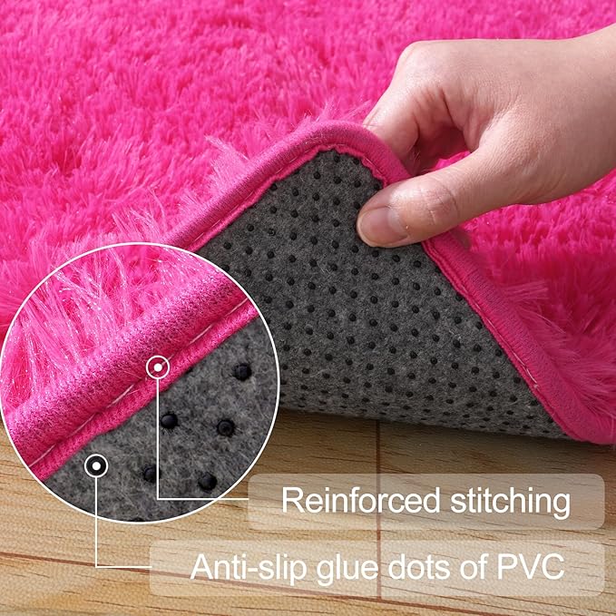 5x7 Area Rugs for Living Room, Large Fluffy Rug for Bedroom, Soft Shag Shaggy Fuzzy Carpets for Boys and Girls Dorm Room Home Decor (5ft x 7ft, Hot Pink)