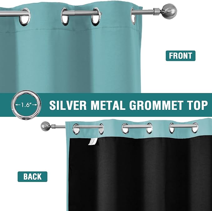 ChrisDowa 100% Blackout Curtains 63 inch Long for Bedroom with Black Liner, 2 Thick Layers Total Blackout Thermal Insulated Grommet Window Curtains 2 Panels Set (Aqua, 38 x 63 Inch)