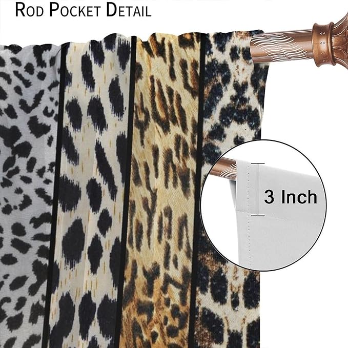 Leopard Print Blackout Curtain, Rustic Wild Animal Skin Farmhouse Fur Leopard Print Drapes, Rod Pocket Window Treatments 2 Panels Curtains for Kitchen Living Room Bedroom Cafe Decor 84"W X 84"L