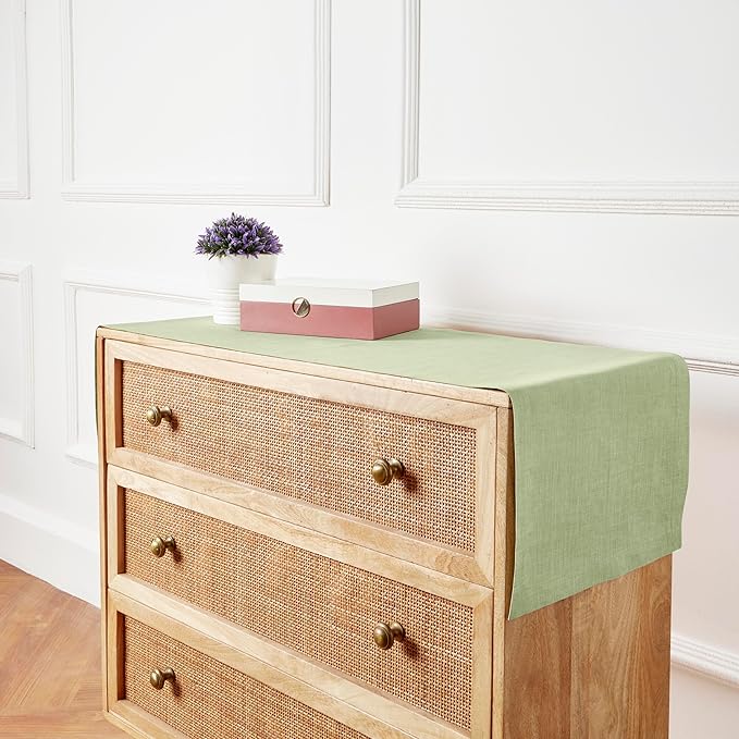 • 𝗖𝗼𝗺𝗽𝗼𝘀𝗶𝘁𝗶𝗼𝗻 𝗮𝗻𝗱 𝗖𝗿𝗮𝗳𝘁𝘀𝗺𝗮𝗻𝘀𝗵𝗶𝗽 : 100% Pure European Flax Linen Chambray Olive Thanksgiving Table Runner - 𝗔𝘁𝗵𝗲𝗻𝗮 | Handcrafted By Skilled Artisans.