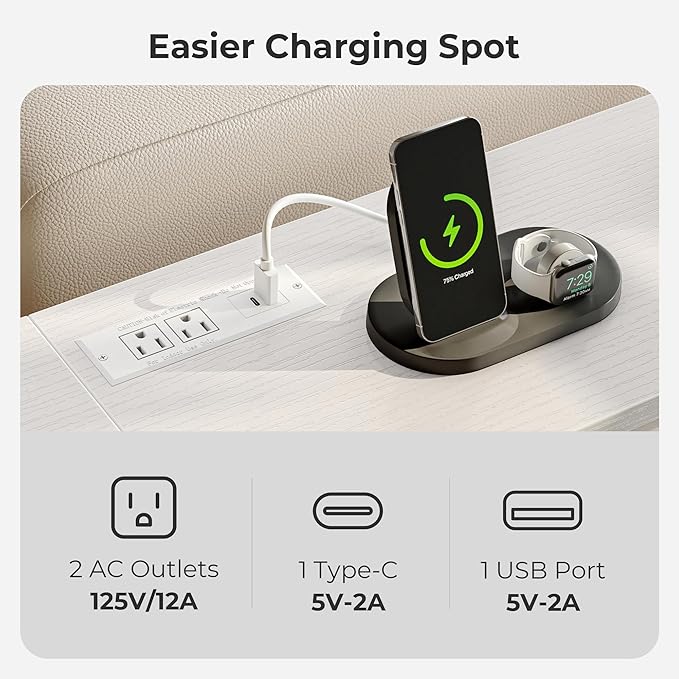 • 【Multiple Sofa back Charging Options】No more diving behind the sofa for an outlet! This sofa table features 2 AC outlets, 1 USB, and 1 USB-C port, perfect for charging your phone, lamp, speaker, or laptop right where you need it, whether behind your couch, in the hallway, or by the entry