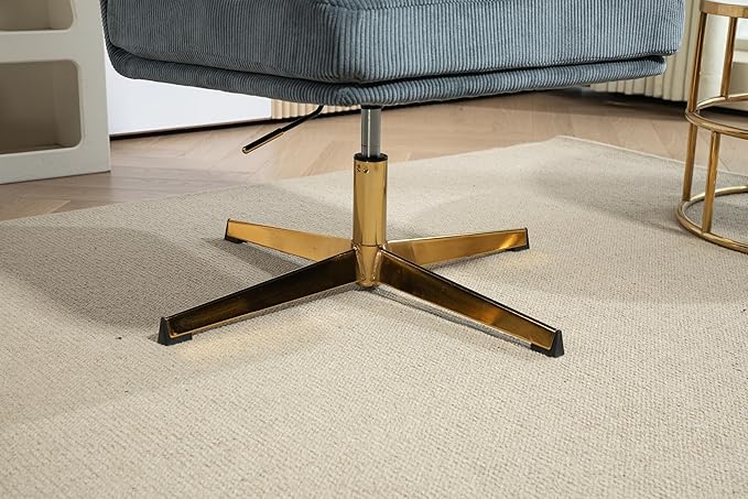 ZOBIDO Modern Accent Corduroy Chairs Comfy Upholstered Vanity Chairs for Bedroom Armchair Dining Chairs with Golden Metal Legs Desk Chair for Living Room(Blue