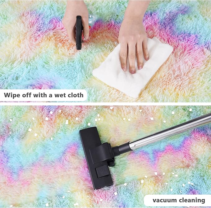 • Area Rug Clean Care: When you want to clean the rug, you can use a small handheld vacuum cleaner to remove dust or hand wash with mild water, you can also use a damp cloth to gently wipe the rug, and then put it in a ventilated place to air dry, avoid using the dryer.