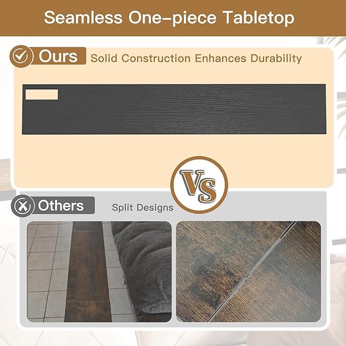 • Seamless One-piece Tabletop: Our Behind couch table features a seamless, one-piece tabletop for superior stability, unlike split designs that may shift or loosen over time. The solid construction enhances durability, preventing wobbling and misalignment. Its sleek, modern look makes it a perfect addition behind sofas, along hallways, or under windows, offering both style and functionality for any space