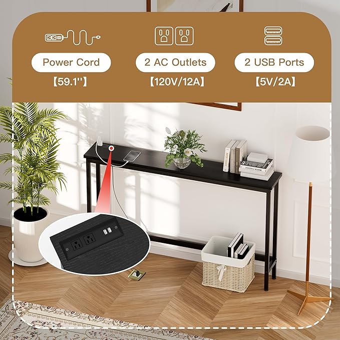• Space-Saving Design: Thin console table profile fits table behind couch, under windows, or along hallways, behind the couch table with outlet is maximizing space without compromising style
