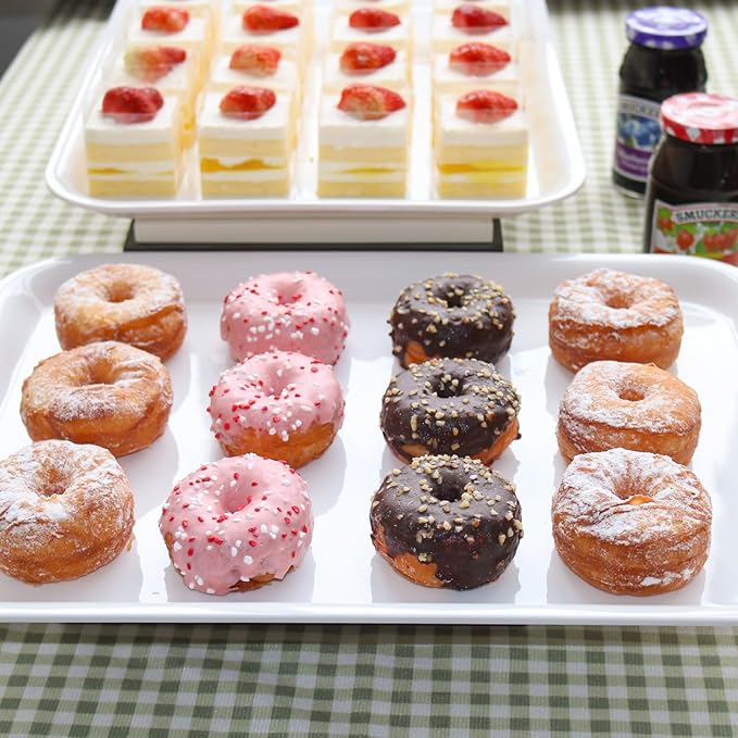 17 x 12 inches Melamine Serving Tray, Dinner Plate Tray, Serving Platter for Appetizers, Breakfast, Drinks, Barbecues and Parties, White