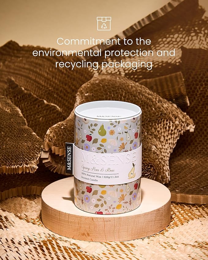 M&SENSE Spring Pear Rose Scented Candle, Medium Jar Candle 11.3oz Natural Soy Wax for Home Scented, Floral Candles Gift for Spring Holiday, Up to 70 Hours Burning Long-Lasting Fragrance