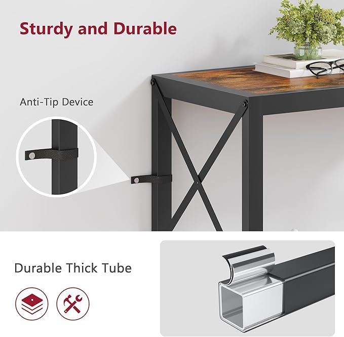 Tajsoon Console Table, 2 Tier Small Hallway Table, Narrow Sofa Table for Entryway with Open Shelves for Living Room, Hallway, Foyer, Office, Rustic Brown