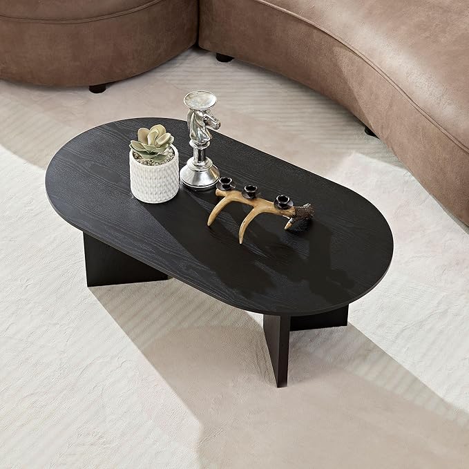 WILLIAMSPACE 39.37" Oval Wooden Coffee Table, Modern Wood Center Table with Sturdy Pedestal for Living Room, Accent Side Table End Table for Apartment (Black)