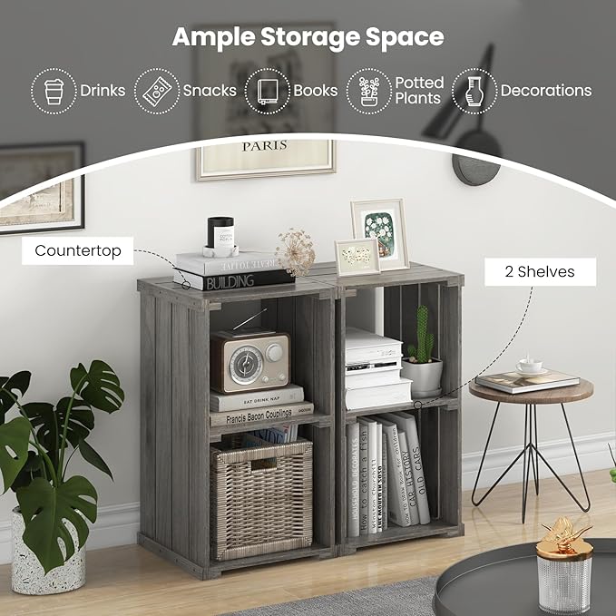 Giantex 2-Cube Bookcase Set of 2, 3-Tier Paulownia Wood Cubic Organizer w/Open Back, Freestanding Cubby Storage Shelf, Slatted Wooden End Table, Farmhouse Style Bookcase for Living Room, Bedroom