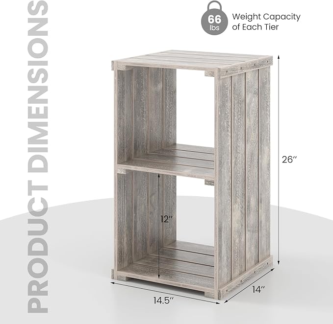 • [Perfect Indoor Addition]: Combining an appealing appearance with high functionality, this 2-cube shelf is perfect for study, living room, bedroom, and more. Its overall dimensions are 14.5" x 14" x 26" (L x W x H).