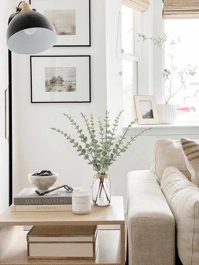 • Maintenance-free: The artificial green plant stems require no water, sunlight, or fertilizer, will never wilt or shed, stays green year-round.Eucalyptus leaves are easy to clean; simply wipe with a soft dry cloth to keep them neat and tidy.