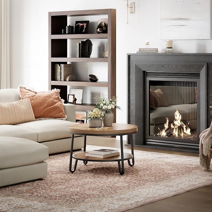 • 2-Tier Round Coffee Table: Enhance your space with this stylish round coffee table featuring a sturdy 2-tier design. With a spacious surface area of 31.5" x 31.5" and a base measuring 27.55" x 27.55", it's ideal for all your essentials