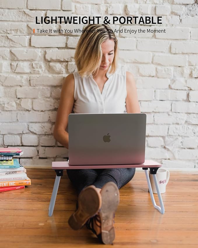 Foldable Lap Desk, Laptop Bed Desk, Portable Bed Table, Laptop Stand for Bed & Couch, Lightweight & Mini - Pink