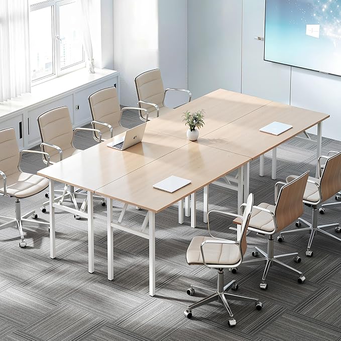 • The collapsible desk no assemble needed, can be opened and folded in a few seconds; legs can adjust 1/2"-1" lengths, made the folding office table keep stable even on uneven floor; it folds up quickly and can be stored easily without taking up too much space.