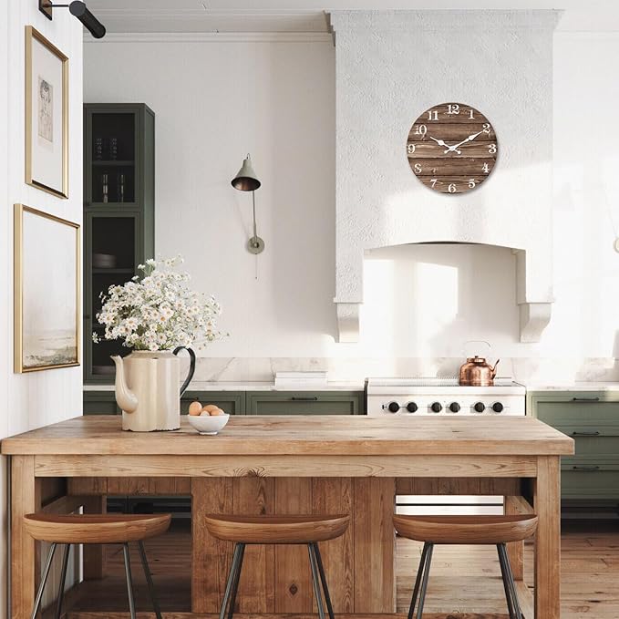 • 【Decorative Wall Clock】Add a touch of warmth to your cabin decor or rustic theme home interior. This wooden wall clocks is perfect for adding a decorative touch to any room, such as living room, bedroom, kitchen,guest room decor, bathroom wall art, dining room, conference room, hallway, apartment room, hotel,etc.